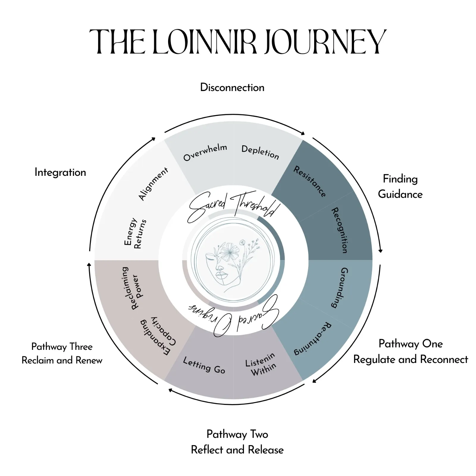Each stage of the Loinnir supports a different part of your healing from finding safety in your body, to releasing what’s been carried for too long, to reclaiming your energy and sense of self. Take a moment to discover which pathway you’re being called to begin with.